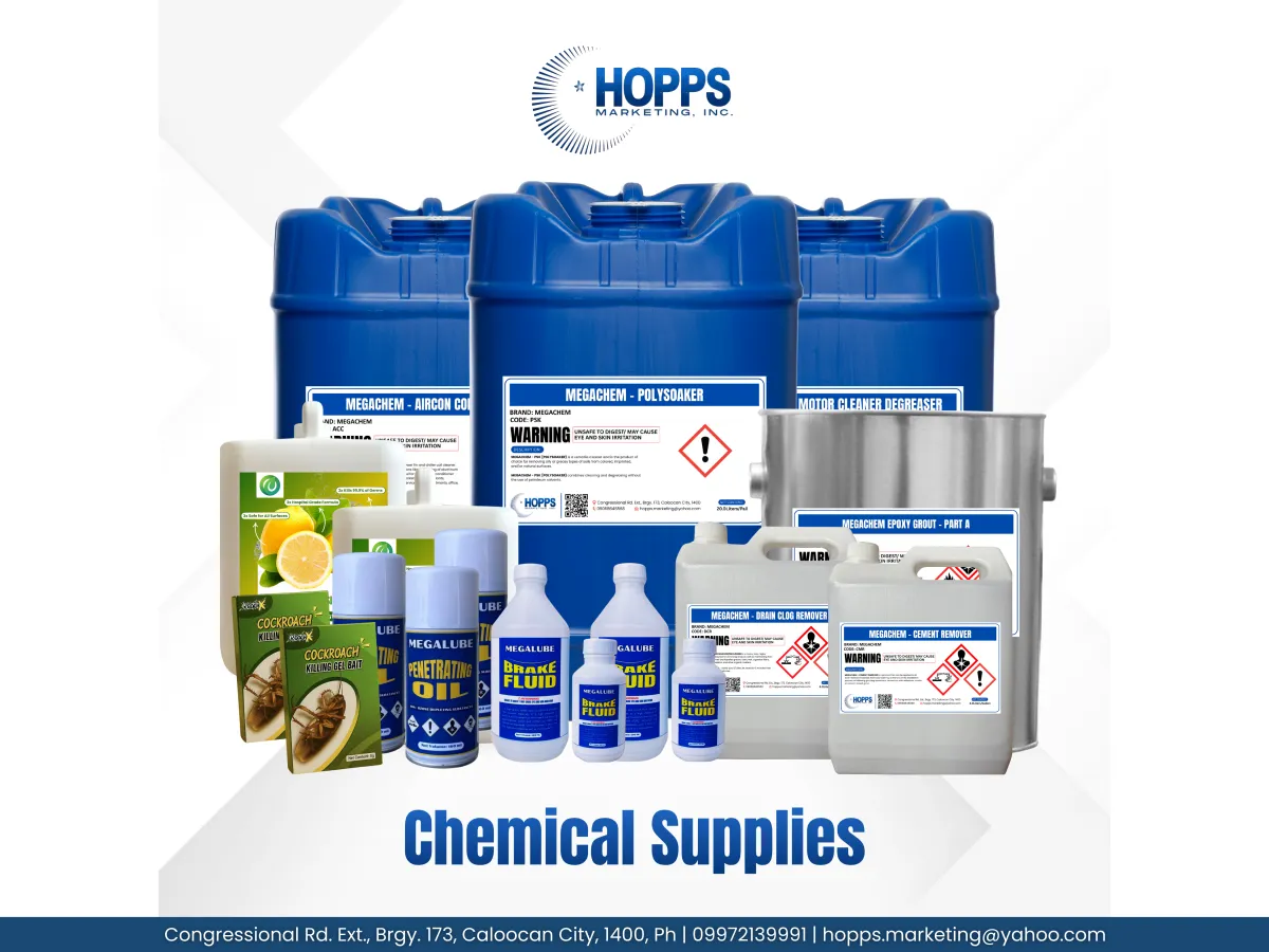 We offer a wide range of industrial, home, and business essentials including chemicals, cleaning supplies, hardware, janitorial tools, automotive products, safety gear, office essentials, and health products.